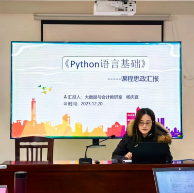 比赛中,由各教研室选拔推荐的4名教师依次现场说课。各参赛教师在15分钟内结合自己的专业特色和课程特点,深入挖掘课程中蕴含的思政元素和所承载的思想政治教育功能,将思想政治教育有机融入到课堂教学中,展示出各具特色的教学设计和教学风采。经过近1个小时的激烈角逐与评审,大数据与会计教研室杨庆宜老师荣获一等奖。