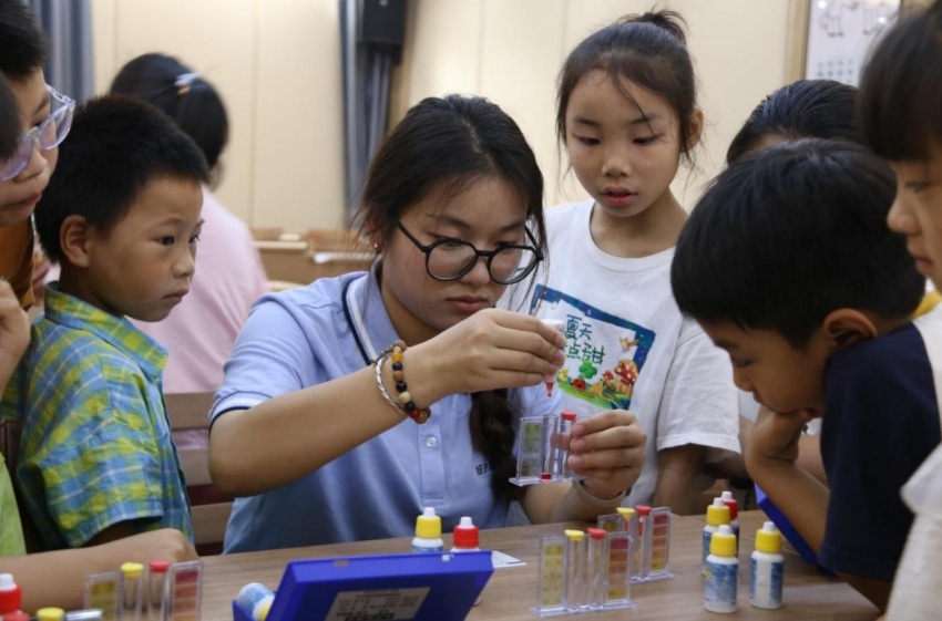 保护长江,播撒绿色理念。“我们志愿者和小朋友们一起手持画笔共同为‘长江大保护画卷’着色,将长江及江豚嬉戏的画面一一呈现出来,表达守护好长江生态的愿望。”志愿服务团队长任佳瑶表示,在开展的生态科普课上,同伴们深入讲解“长江禁渔”、江豚与长江大保护的重要性。同时,学生志愿者还带着儿童们做水的酸碱度检测小实验,学习环保知识,增强爱护长江母亲河的生态环境意识。